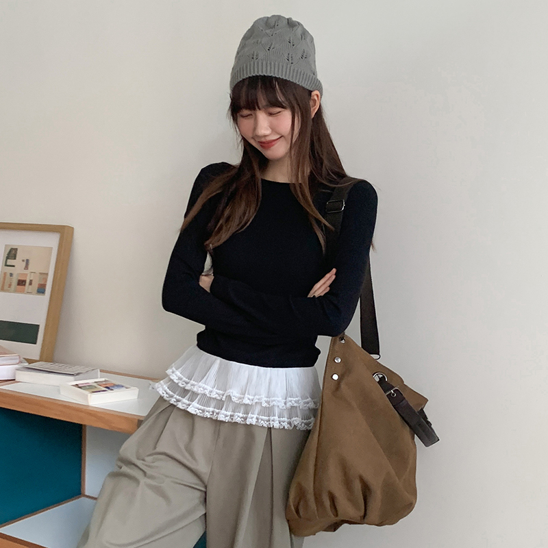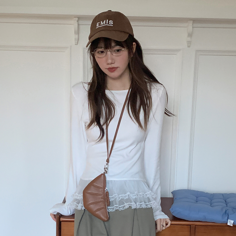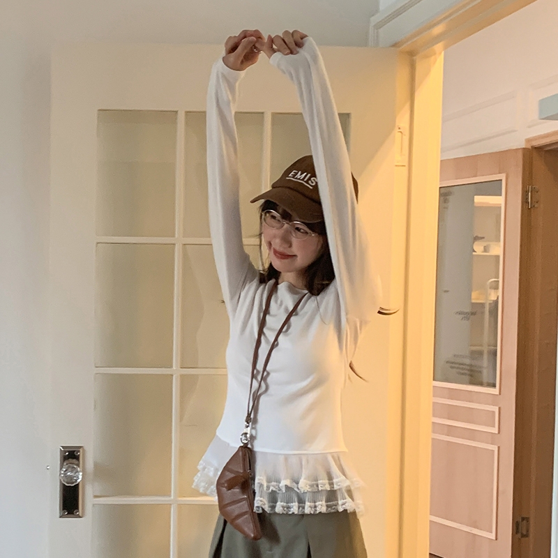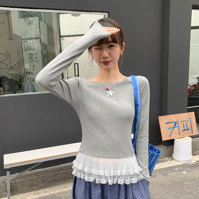 실제 사진 및 가격#One-Shoulder 레이스 스 플라이 싱 레이스 ​​여성용 긴팔 티셔츠 이른 봄 디자인 바닥 셔츠 속옷