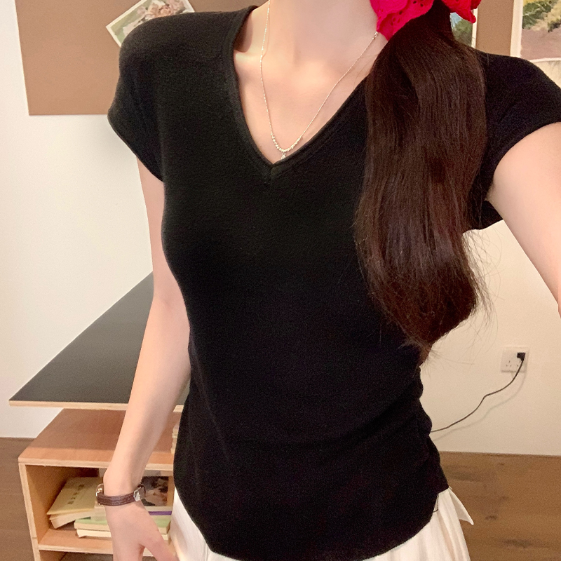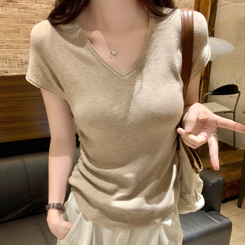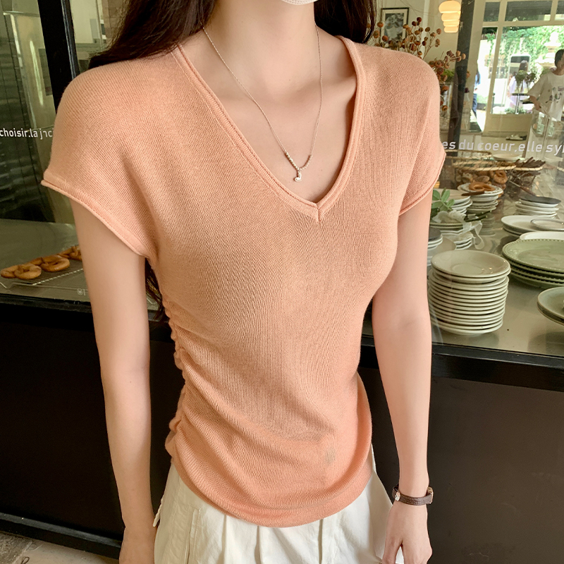 실제 가격# 여자를위한 주름 허리 길이 어깨 어깨 짧은 슬림 스웨터